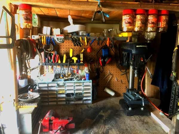 Everything else that I use everday are all at hand, the hammer hangs on the wall to the right, hacksaws on the left, hand saws on the right.